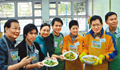 中新網(wǎng)12月14日電 據(jù)香港《文匯報(bào)》報(bào)道,港府問責(zé)官員及立法會(huì)議員論政不出奇,親身示范政策理念又如何?香港民建聯(lián)婦女事務(wù)委員會(huì)13日邀請(qǐng)環(huán)境局副局長(zhǎng)潘潔、立法會(huì)議員譚耀宗及陳克勤等,一齊煮食健康菜式,推廣低碳健康廚房,做得也似模似樣。