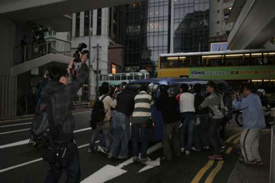 車輛在軍器廠街駛進(jìn)警察總部的路程,原本只需短短一分鐘,因在場(chǎng)守候的記者剛見客貨車駛進(jìn),即蜂擁而上包圍客貨車拍照,結(jié)果車輛花了多達(dá)15分鐘,才能進(jìn)入大廈內(nèi),場(chǎng)面一度混亂,期間警方出動(dòng)十多名警員在馬路上維持秩序。陳的私人保鏢3日曾尾隨警方車輛駛離寓所,但4日總部現(xiàn)場(chǎng)所見,他們似已再無(wú)隨行。