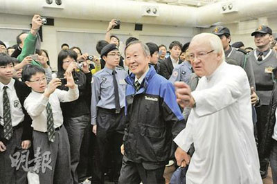 身穿藍(lán)色外套、系上母校領(lǐng)帶的高錕,7日出席母校圣若瑟書(shū)院成立135周年開(kāi)放日開(kāi)幕典禮。精神飽滿(mǎn)的高錕在全場(chǎng)熱烈掌聲下,由校監(jiān)湯瑪士修士陪同進(jìn)入禮堂,太太黃美蕓則拉著高錕的外套,緊隨其后進(jìn)場(chǎng)。