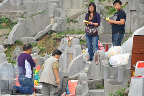 在鉆石山墳場,依舊有大批市民扶老攜幼,手挽大包小包香燭、冥鏹、元寶;以及鮮花、燒豬、燒肉、生果等祭品,昨日早上前往掃墓,但較去年人數(shù)略為減少。市民陳小姐說,今年掃墓較去年少人,“可能是清明撞正復(fù)活節(jié)長假,不少市民提早掃墓,或外出旅游未返有關(guān),今年行上山都沒過去擠迫!