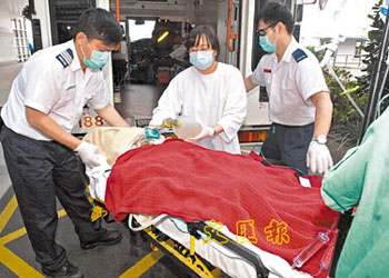 警員與救護員接報趕到現場,立即替兩名傷者進行急救,其中女戶主因傷勢相當嚴重,送院后一直未見醒來,目前情況危殆。至于男戶主則全程清醒,他傷勢嚴重,涉嫌傷人罪名被捕。事后警員在單位檢走一個“通渠水”膠瓶及有關證物調查,案件列作傷人案處理。