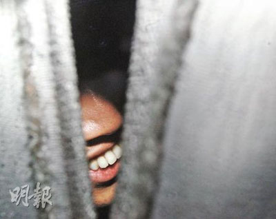 此時(shí),探員在陳宅內(nèi)調(diào)查已近3小時(shí),6時(shí)40分,陳振聰被捕帶返警署。一輛沖鋒車率先駛出大閘開路,尾隨一輛深藍(lán)色警方客貨車,只見車身兩邊與后車窗俱掛上布簾,傳媒包圍爭攝車內(nèi)情況,黑暗的車廂內(nèi)乍現(xiàn)一排潔白的牙齒,正是陳振聰?shù)恼信啤八娜f”笑容。