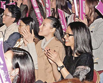 3日晚9時(shí),當(dāng)鄭秀文演唱會(huì)開始時(shí)尚未見到梁洛施出現(xiàn),原來她悄悄在開秀后才入場(chǎng),大會(huì)早已收到通知,為免梁洛施受記者拍照騷擾而在通道圍欄兼有保安駐守。由于梁洛施一向視鄭秀文為偶像,所以全晚她都聽得非常投入,不過就沒有跟其他歌迷一樣手舞足蹈跳舞,她看到安歌前才離去。