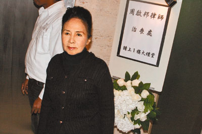 4時10分,周國豐妻子及剛滿月的兒子周禮淳到達殯儀館,囝囝剛滿月,不宜逗留太久,只到一到。約5點20分,周啟邦遺孀譚月清到達殯儀館,并透露選了四季不同的衣服給亡夫陪葬,又會燒樓燒車給亡夫。問到其心情如何?她坦言已平伏些,更贊兒子好乖,會陪她吃飯,孫兒好得意。問她想對亡夫講什么?她即說:“好掛住他,沒有人可以代替他,永遠懷念他!”