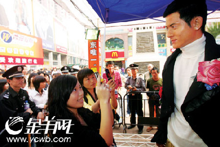 據(jù)了解,今年的聯(lián)展首度吸引了港澳諸多知名景區(qū)的加盟,如香港海洋公園、杜莎夫人蠟像館等。他們都各出奇招來穗“攬客”。如香港杜莎夫人蠟像館不惜斥巨資,投保額100萬元,請專業(yè)的運(yùn)輸公司將“郭富城蠟像”送到活動現(xiàn)場助陣。而海洋公園的吉祥物——活潑可愛的“威威獅令”也現(xiàn)身街頭,與廣大市民親密接觸。