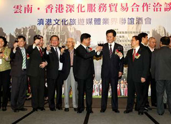8日的新聞發(fā)布會之后,云南省政府還在會展舉辦了“滇港文化旅游媒體業(yè)界聯(lián)誼酒會”。云南省副省長顧朝曦、中聯(lián)辦副主任李剛,以及香港文化旅游媒體業(yè)界多位知名人士出席了酒會。