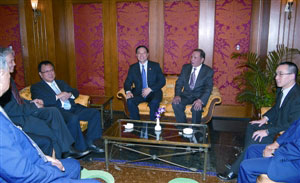 中新網(wǎng)4月16日電 據(jù)澳門日?qǐng)?bào)報(bào)道,正率團(tuán)訪問(wèn)港澳的上海市政協(xié)主席馮國(guó)勤,15日中午應(yīng)澳門蘇浙滬同鄉(xiāng)會(huì)的邀請(qǐng),出席該會(huì)的歡迎宴會(huì),新一屆上海市政協(xié)澳門地區(qū)委員也出席。全國(guó)政協(xié)常委、澳博行政總裁何鴻燊熱情接待馮國(guó)勤一行,并陪同馮國(guó)勤參觀在新葡京酒店展出的馬首銅像。