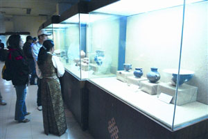 晚上,在當?shù)赜嘘P(guān)部門的安排下,記者團一行到西藏博物館參觀。西藏博物館藏品達3萬多件,其中已整理和建檔的文物中有國家一級文物304件。