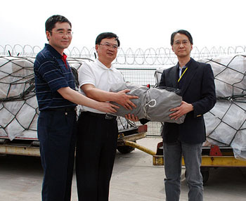 應(yīng)四川省政府港澳辦的要求,香港特區(qū)政府已采購及安排分批空運(yùn)約值370萬元的帳篷往四川。第1批帳篷運(yùn)抵成都后,另批1500個(gè)帳篷將盡快運(yùn)送。
