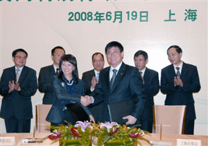 在經(jīng)濟財政司司長譚伯源及上海市委常委、上海市常務副市長、2010年上海世博會執(zhí)行委員會常務副主任楊雄等的見證下,上海世博會澳門籌備辦公室主任楊寶儀及上海市副秘書長、上海世博局局長洪浩代表雙方簽署協(xié)議。