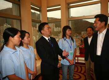 報(bào)告會(huì)之后,中聯(lián)辦副主任李剛會(huì)見了代表團(tuán)的各位成員。曾經(jīng)長(zhǎng)期從事青年工作的李剛,就青年工作的開展與來自四川的青年代表親切交談。對(duì)于青年人在抗震救災(zāi)中的杰出表現(xiàn),李剛表示十分感動(dòng),他希望青年人在重建過程中發(fā)揮更大力量。