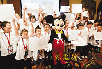 董沛今年9歲,是團中年紀最小的團友,來港短短兩日中,他最難忘的除了是見到樂園中的卡通人物,樂園酒店房間里的洗手間也讓他眼界大開。他興奮地說,“酒店洗手間美輪美奐,跟迪斯尼動畫片一些場景是一樣的”。其后各人獲安排到樂園的動畫藝術(shù)教室參觀,過程中董沛認真學畫米奇老鼠頭像,“我們小學每天的課程不多,但是我最喜歡美術(shù)課”。