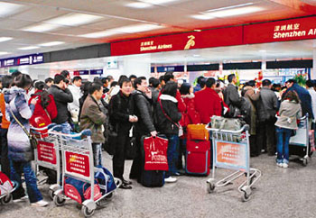來往香港和內地的客流量很大,統(tǒng)計顯示,深航去年1000多萬旅客中,有近400萬是香港旅客或到香港旅游的人,占了整個運輸量近40%。而深圳機場提供的數據顯示,往香港的內地游客中,有1/4是通過深圳機場中轉至香港。同時,經過香港中轉往內地的國際旅客數量也非常龐大。