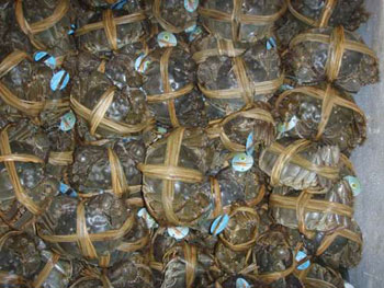 據(jù)負(fù)責(zé)出口香港大閘蟹的大通湖和平水產(chǎn)公司總銷售經(jīng)理孫建斌介紹,因?yàn)殛?yáng)澄湖大閘蟹產(chǎn)量減少,為盡量滿足香港市民的需要,湖南大通湖今年將增加出口量,選擇個(gè)大、肥美的10萬(wàn)斤大閘蟹輸送香港。