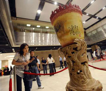 香港首屆紫荊花杯國(guó)際文化藝術(shù)博覽會(huì)19日起至21日在香港展覽中心舉行,展出280件全國(guó)各地名師名家的陶瓷以及字畫(huà)作品,國(guó)家青瓷泰斗徐朝興的成名珍藏作品三環(huán)瓶,白瓷領(lǐng)軍人物蘇清河的代表作品魚(yú)籃觀音,還有描繪國(guó)務(wù)院總理溫家寶指揮抗震救災(zāi)的油畫(huà)等,均是出現(xiàn)在此次博覽會(huì)的藝術(shù)珍品。
