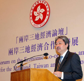 中新網(wǎng)10月29日電 據(jù)香港特區(qū)政府網(wǎng)站消息,香港財政司司長曾俊華29日出席香港特別行政區(qū)政府主辦的“兩岸三地經(jīng)濟合作與發(fā)展”論壇,并呼吁港人無需擔心“三通”,因為這將為兩岸三地的經(jīng)濟注入新的活力,帶來新的機遇。