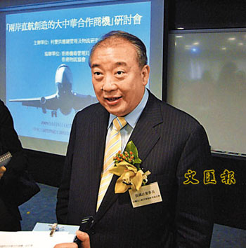 張國政指,目前每星期只有逾百班兩岸直航機(jī),對香港的影響不大,但如果航班陸續(xù)增加及可以實行客倉帶貨,則會對香港的航運(yùn)就造成一定影響。