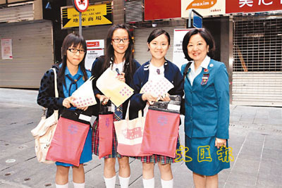 中新網(wǎng)12月4日電 香港女童軍總會全港賣旗日早前圓滿舉行,今次賣旗籌款活動除了女童軍會員和家長們?nèi)χС滞,更獲得全港接近400間中、小學及其它機構(gòu)的鼎力支持,令今次參與賣旗的義工人數(shù)達到破紀錄的1.2萬多人,成績令人振奮。