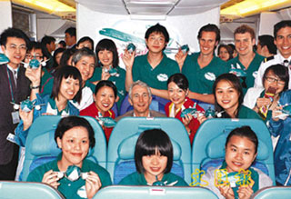 此外,國泰也安排了18名香港中文大學的海外交換生作英語大使,為學生提供“學好英語”的機會,機艙也變成了一間“空中英語教室”。