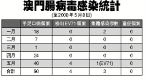 托兒所再新增兩病例 澳門手足口病增至九十例