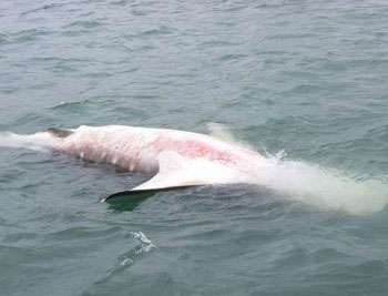 豈料事隔一日,至8日上午9時許,有釣魚發(fā)燒友租艇由香港仔往南丫島垂釣,開船15分鐘后即在鴨利洲以東海面發(fā)現(xiàn)一條大魚浮尸,而當時已有一艘水警輪在場,他相信該條大魚尸體就是日前放生的鯨鯊,事后更將拍攝的相片上載到互聯(lián)網(wǎng),引起網(wǎng)友熱烈討論。