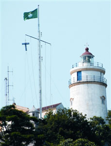澳門氣象局23日上午懸掛一號(hào)戒備信號(hào)。(圖片來源:澳門日?qǐng)?bào))