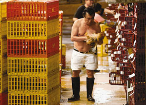 特區(qū)政府早前因多個(gè)街市雞文件雞糞樣本找到H5N1禽感流病毒,遂頒布街市殺雞令,暫停本地和內(nèi)地農(nóng)場的活雞供應(yīng)21日,并緊急立法規(guī)定街市活雞不可留過夜。隨著活雞禁令取消,1日有約萬只活雞運(yùn)抵長沙灣臨時(shí)家禽批發(fā)市場,至傍晚,大江埔的本地農(nóng)場亦開始把活雞運(yùn)往批發(fā)市場。