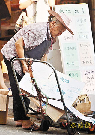 負(fù)責(zé)調(diào)查的浸大社會(huì)工作系助理教授李建賢表示,雖然拾荒者仍以長(zhǎng)者為主,但發(fā)現(xiàn)天水圍區(qū)的中年拾荒者開(kāi)始冒起,“現(xiàn)在經(jīng)濟(jì)開(kāi)始差,失業(yè)率或會(huì)上升,新界西北地區(qū)已出現(xiàn)中年拾荒者加入競(jìng)爭(zhēng),趕走不少公公婆婆,令長(zhǎng)者生活更慘!