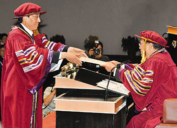 城大今年9151名畢業(yè)生中,包括88名哲學(xué)博士、4名工程學(xué)博士,另有112人獲哲學(xué)碩士學(xué)位、1984人獲各科碩士學(xué)位、271人獲深造文憑證書,而本科學(xué)士畢業(yè)生則有4096人,副學(xué)士畢業(yè)生354人,另經(jīng)城大專上學(xué)院頒授副學(xué)士學(xué)位也有2242人。