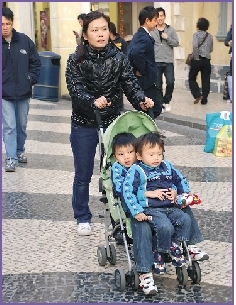 小朋友一齊坐最保暖。(圖片來源:澳門日報)