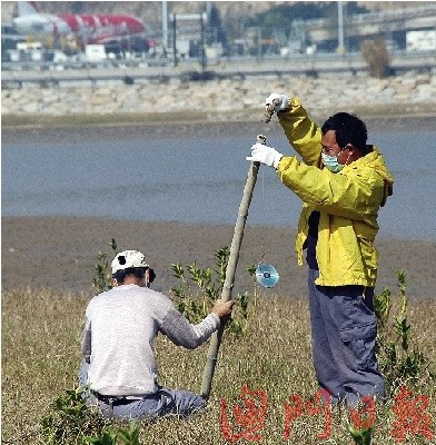 中新網(wǎng)1月19日電 據(jù)澳門日?qǐng)?bào)報(bào)道,澳門路氹城固體廢物堆填區(qū)和附近淺灘長(zhǎng)期有大批雀鳥棲息覓食,經(jīng)常闖入機(jī)場(chǎng)范圍,對(duì)航機(jī)安全構(gòu)成威脅。民署18日派出工程人員在靠近機(jī)場(chǎng)的淺灘架設(shè)八組由光盤組成的反光裝置,測(cè)試驅(qū)趕雀鳥效果。