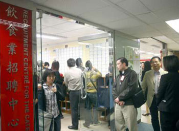 現(xiàn)年25歲、剛畢業(yè)于暨南大學(xué)經(jīng)濟(jì)系的陳先生,5日下午2時(shí)到招聘中心“碰運(yùn)氣”。他分別向兩個(gè)集團(tuán)應(yīng)征侍應(yīng)生,月薪6000元。他說,過去3個(gè)月曾發(fā)出50至60封求職信,但獲面試的機(jī)會很少。早前曾參加不同活動,如書展臨時(shí)工等,但一直未覓得全職工作,現(xiàn)時(shí)特別留意招聘廣告或招聘會消息。