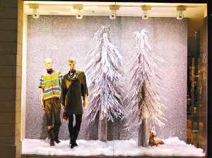 除了燈飾,估計很多女孩子最喜歡看的還是商店櫥窗吧。雖然已經(jīng)有部分品牌已經(jīng)開始打折,不過一來不是那些十分大牌的品牌,二來折扣也未算去到最低,吸引力剛夠你的心跳那么一下而已。比它們更吸引的是大牌子專賣店的櫥窗。和廣州的商家不同,澳門的品牌專賣店櫥窗大多都是由專門的櫥窗設(shè)計師負責(zé)打理的,通常都會設(shè)計得很立體和整體性很強,譬如某品牌的節(jié)日裝修就是從櫥窗后面“種”出好幾棵許愿樹,把櫥窗和正常的店面連接起來,模特就穿著當季服飾站在樹下,任顧客去仔細研究,甚至你伸手去摸也沒關(guān)系。