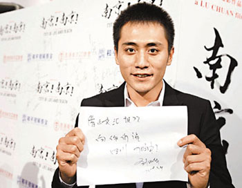 去年發(fā)生四川地震時(shí),陸川和《南京!》的劇組人員在長(zhǎng)春拍攝電影中,得知地震發(fā)生后,高圓圓、秦嵐以及整個(gè)劇組都有捐錢(qián),一方有難八方支持。相隔一年,見(jiàn)到四川的同胞漸漸走出陰霾,“在此我希望對(duì)他們說(shuō):‘沒(méi)有什么可以阻擋我們對(duì)生命的向往,地震一周年,祝四川的同胞身體健康,快樂(lè)!’”