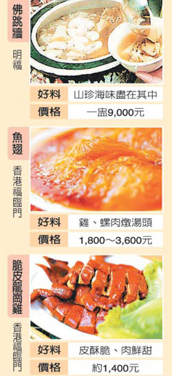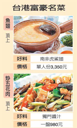 其中福臨門就是眾所公認(rèn)的富豪飯?zhí),脆皮雞、燕窩、魚(yú)翅與荷葉糯米飯,在質(zhì)量與口碑上都是一等一,價(jià)格也成正比,以套餐為例,一客魚(yú)翅、25頭吉品鮑、龍蝦、乳鴿、炒飯加燕窩要港幣2500元。此外鮑魚(yú)大王楊貫一的富臨飯店、四季酒店中米其林三星的龍景軒也都算得上是富豪飯?zhí)谩?/p>