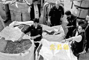 昨午11時,警方突擊搜查天水圍一個五金廢料回收場,其后在6個大型的麻包袋內(nèi),檢獲共重約5噸的各類型的銅制子彈殼,當中包括有5支1呎長或呎半長、直徑5吋的炮彈殼。經(jīng)調(diào)查后,探員拘捕50歲場主及2男3女職員(年齡由18至50歲),并調(diào)查各人是否有黑社會背景。