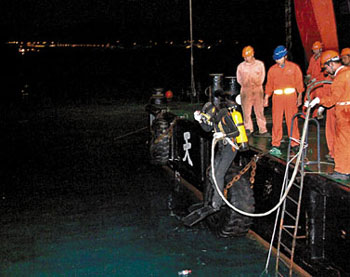 中新網(wǎng)3月26日電 據(jù)香港文匯報(bào)報(bào)道,大嶼山對(duì)面海域海難搜救25日晚有突破性發(fā)展。廣州打撈局的潛水員已摸到沉船入口,并曾進(jìn)入甲板休息室,事后潛水員以導(dǎo)引繩系在門上,讓港方消防蛙人繼續(xù)搜救工作,料進(jìn)入船艙指日可待。至26日晨時(shí)分,潛水員在沉船殘骸附近撈起一具船員尸體。