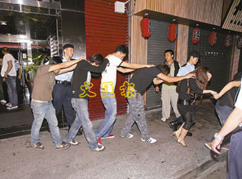 警方開(kāi)燈搜查,在臥底探員逐一指證下,成功拘捕13男4女(由23至28歲),在其身上共檢獲24克K仔、70粒搖頭丸及1粒五仔等懷疑毒品,約值12000元。稍后,該批被捕者與2名涉超額收客的男主持人,連同證物一并帶署調(diào)查。
