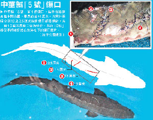 另一方面,海狼在海洋公園已居住近10年,由3吋長養(yǎng)到現(xiàn)在1米多長,從無襲擊其它魚類紀(jì)錄,故相信這次是“意外”,海狼只是與新引入的中華鱘發(fā)生小摩擦或碰撞而導(dǎo)致這反射式行為,而根據(jù)“5號(hào)”身上的4處傷口,雖然最長的達(dá)16厘米,但傷口不深,顯示海狼非刻意攻擊,只是尖牙將“5號(hào)”咬傷。