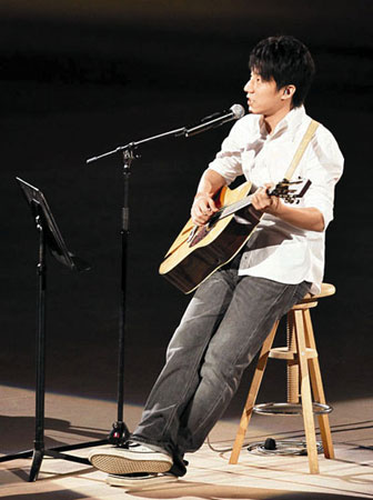 圖:房祖名自彈自唱送給四川災(zāi)區(qū)人民。(圖片來源:文匯報)