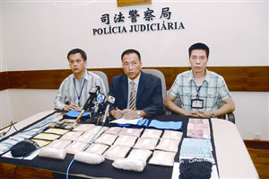 司警局發(fā)言人周偉光7日表示,這次是收到美國緝毒局經(jīng)國際刑警向澳門提供的線索,懷疑一名臺灣男子經(jīng)澳門偷運毒品往印度尼西亞。警方根據(jù)資料鎖定追查案中48歲葉姓男子,他6日下午5時許與另外兩名被捕疑人由關閘一同進入澳門,隨即被司警人員監(jiān)視。