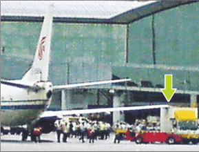 8日上午11時53分,客機降落后預備泊進34號停泊位,其間右邊機翼末端撞及旁邊運送物資工程貨車的車頂,傳出巨響。目擊者稱,機翼與貨車車頂擦撞范圍有2至3尺,眾人恐怕意外引發(fā)機翼和機肚油缸爆炸,貨車司機立即跳車狂奔。多個部門人員聞訊紛紛趕至,疏散飛機上近百人,氣氛一度緊張。