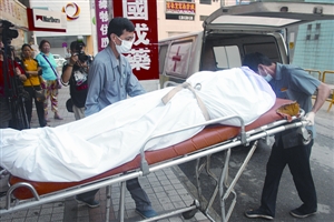 死者遺體由仵工送往殮房處理。(圖片來源:澳門日報(bào))