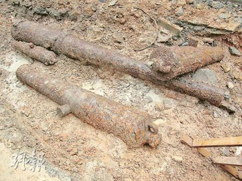 中新網(wǎng)9月19日電 據(jù)香港明報(bào)報(bào)道,香港金鐘英國駐香港總領(lǐng)事館對面地盤,挖出4支共重3噸的生銹大炮。爆炸品處理課人員檢查后,證實(shí)為沒有殺傷力的戰(zhàn)前古炮。
