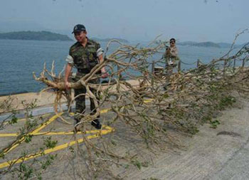 香港水警檢獲一批“九里香”樹(shù)。(圖片來(lái)源:大公報(bào))