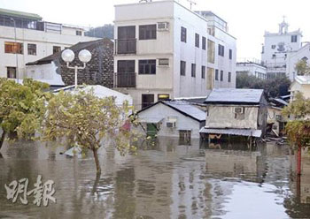 24日凌晨零時前后,“黑格比”正面吹襲大澳,卷起如小山的巨浪沖上岸。睡夢中的居民紛紛被驚醒,發(fā)覺屋內(nèi)一片汪洋,家具電器被水淹浸,電掣出現(xiàn)漏電短路,周圍漆黑一片,狂風巨浪下居民不敢逃出,只有留在二樓或閣樓報警求助。
