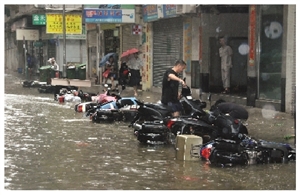 “黑格比”為12年來吹襲廣東最強勁的臺風,澳門沿岸海面24日現(xiàn)驚濤駭浪,漁船紛回港暫避。雖然雨水不多,但臺風引起的大潮令內港、新馬路一帶海水倒灌,造成附近多條街道水浸,最高水深逾1.5米。私家車被水淹浸,車主叫苦連天。