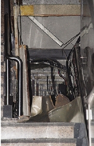 澳門金來大廈梯間電箱的不銹鋼門被炸飛。(圖片來源:澳門日?qǐng)?bào))