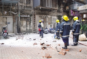 有商號(hào)以為金來大廈梯間電箱爆炸,立即報(bào)警求助。消防搶救車、水泵車和救護(hù)車接報(bào)到場(chǎng)調(diào)查,在現(xiàn)場(chǎng)拉起圍帶,封鎖懷疑爆炸的兩個(gè)地點(diǎn)一帶,避免行人走近。