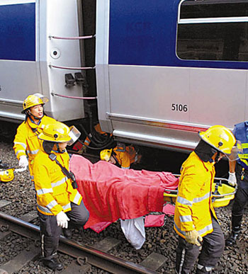 大隊消防員到場,約半小時后從車底救出血肉模糊的女傷者,但被救護員證實明顯死亡。警員事后翻看月臺閉路電視錄像,證實拍下女事主墮軌過程,其后在路軌檢走女事主的高跟鞋、手表及一條毛巾,又在月臺發(fā)現(xiàn)女事主遺下的一個名牌手袋及一部手提電腦。